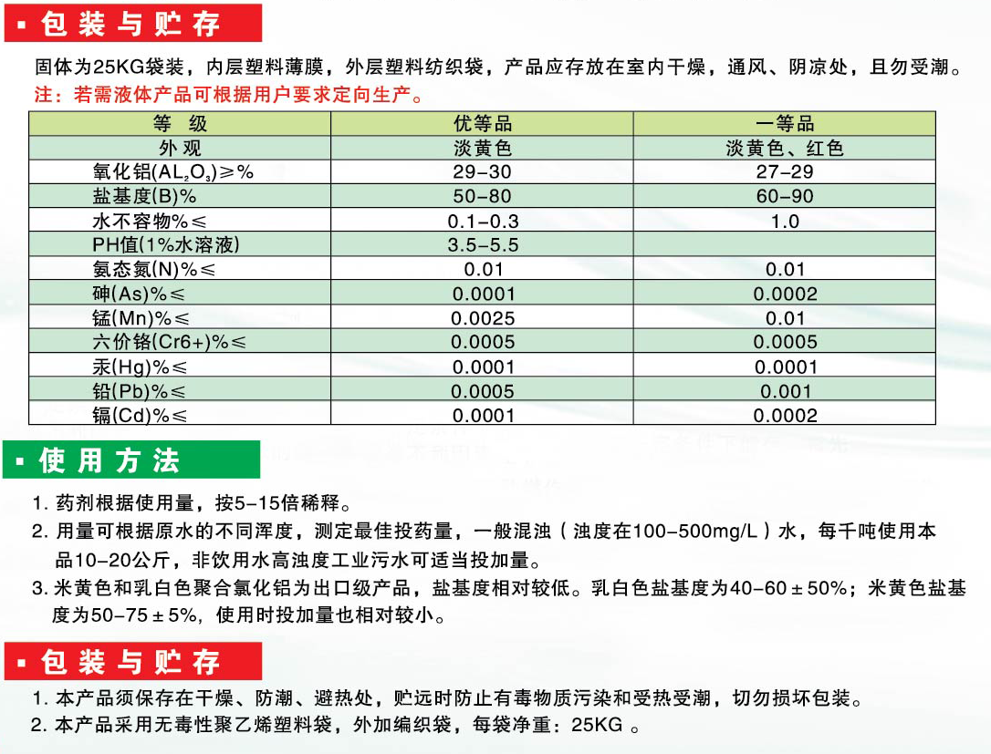 3 .堿化度比其它鋁鹽、鐵鹽高,對(duì)設(shè)備侵蝕作用小。